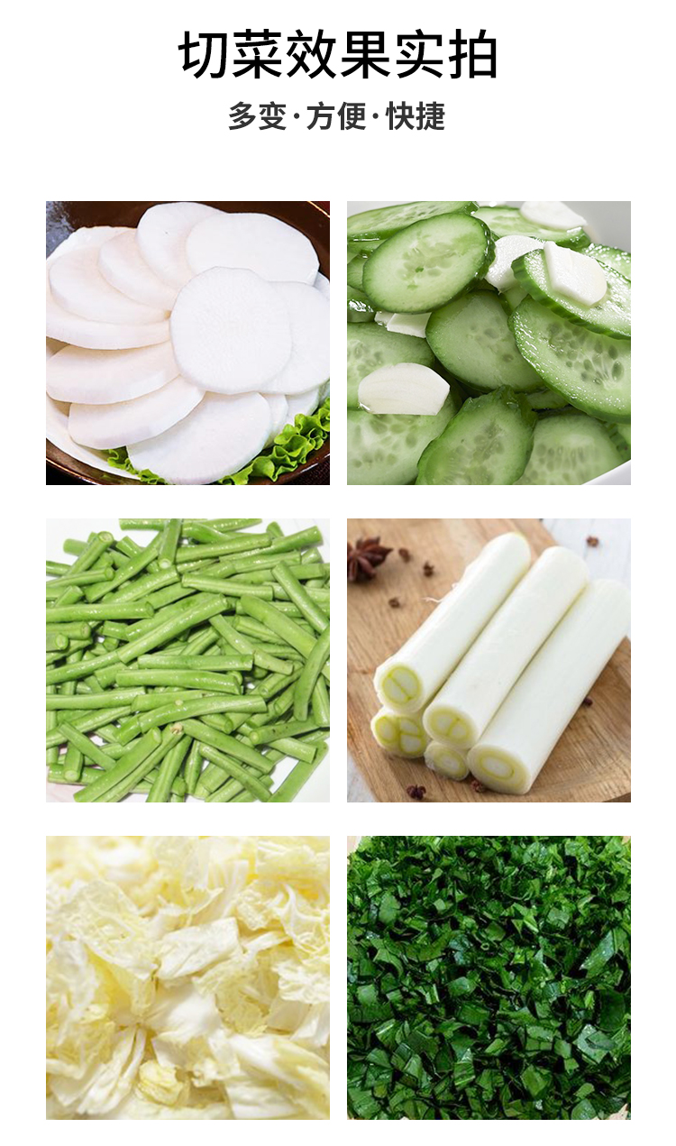 1.新一代多功能切菜机,内外兼修,安全、效率、实用三者兼修,全面进化,更高品质。