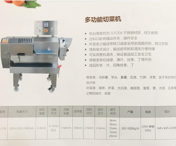 • 产品简介:台湾原装多功能切菜机,常吃常见蔬菜都可切,切片/切丝/切段/切条/切馅/切丁块,一机多用,可代替15-20人工,大品牌,质量保障。...